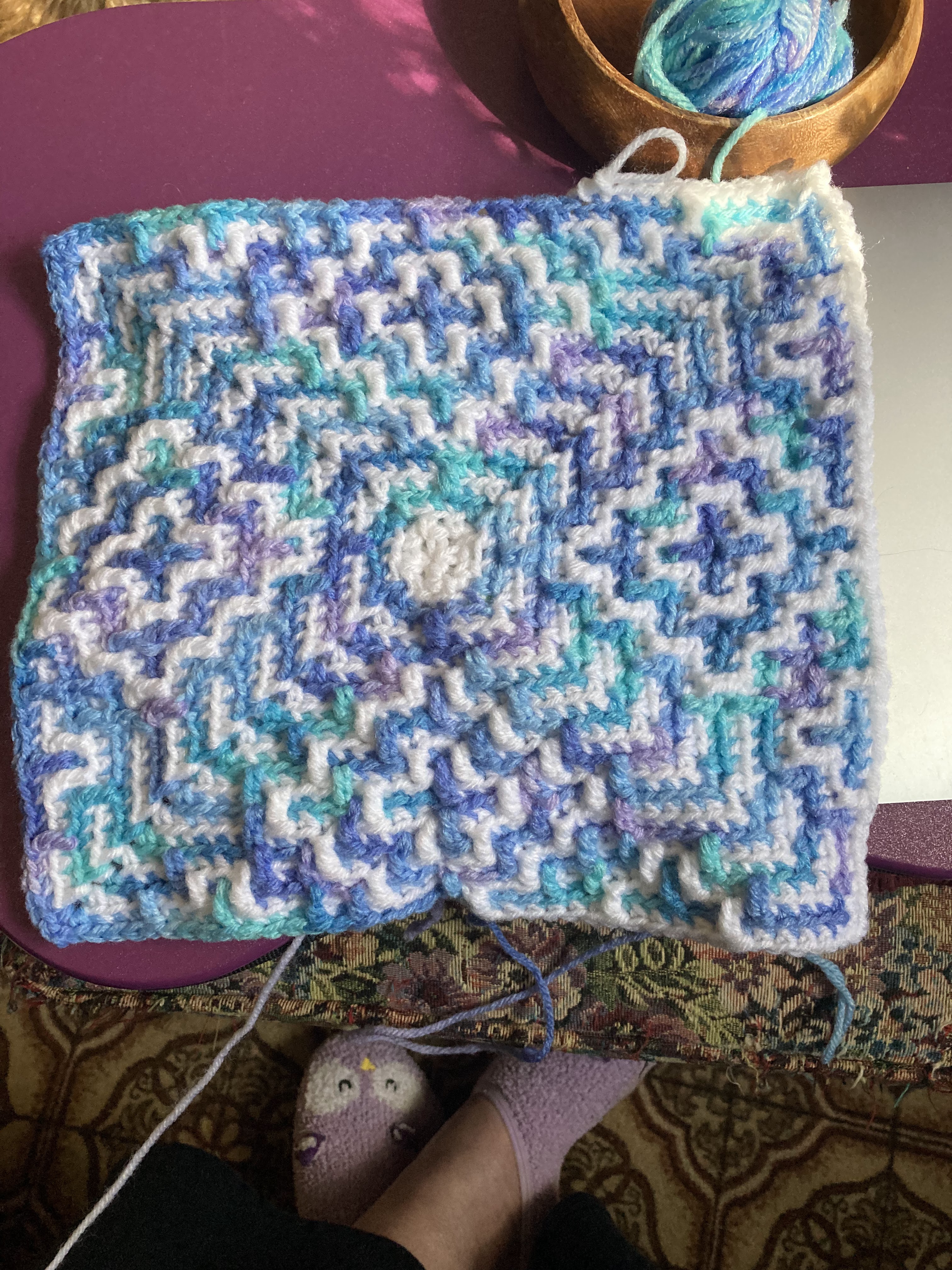 I am still crocheting. I have discovered mosaic crochet and am loving it!